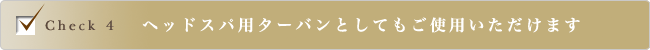 | ヘアトリートメント効果を高めるために、ヘッドスパ用のターバンとしてもご使用いただけます。 |